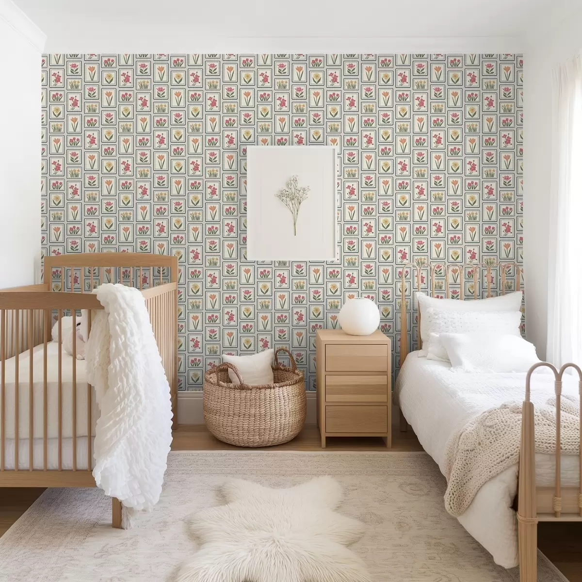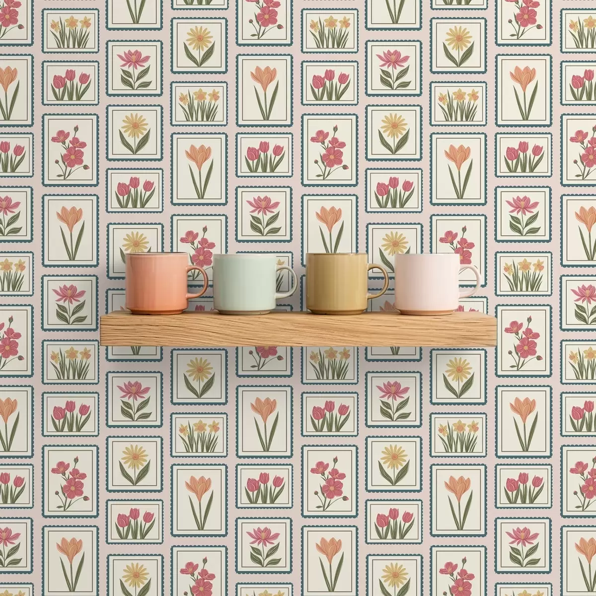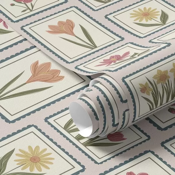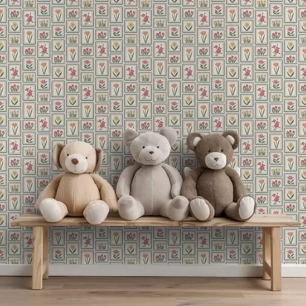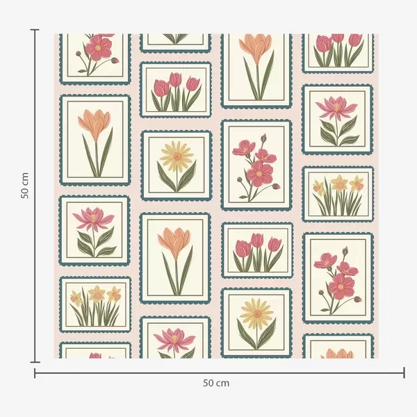 Tapet Blomsterillustrationer i ram med kant Nr. a01174