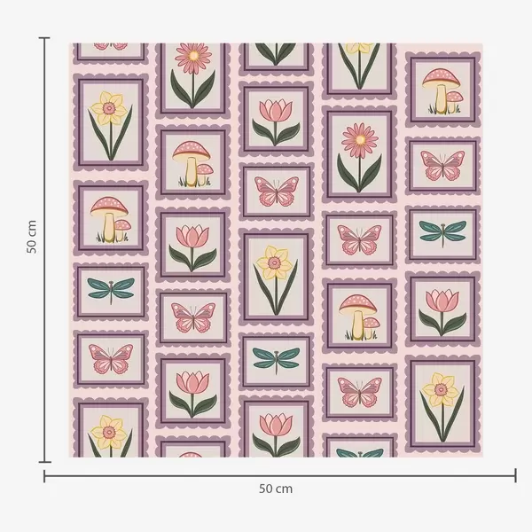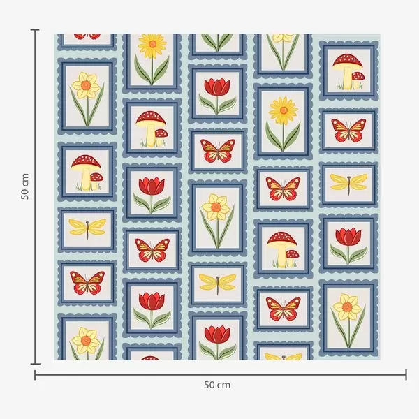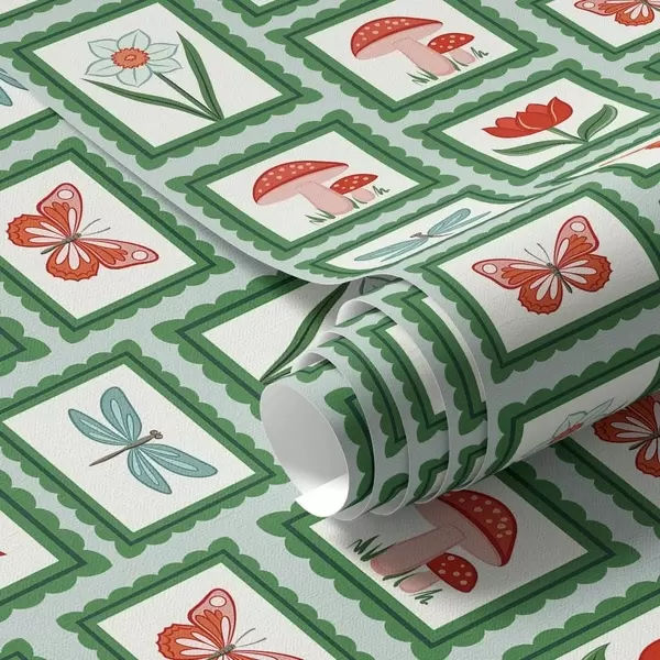 Tapet Blommor, svampar och fjärilar i ram Nr. a01175