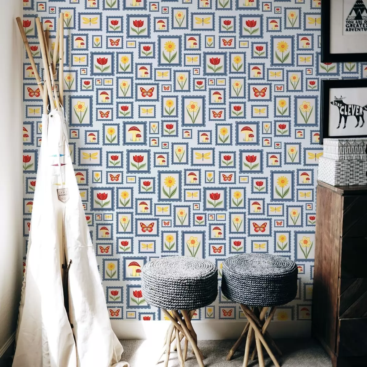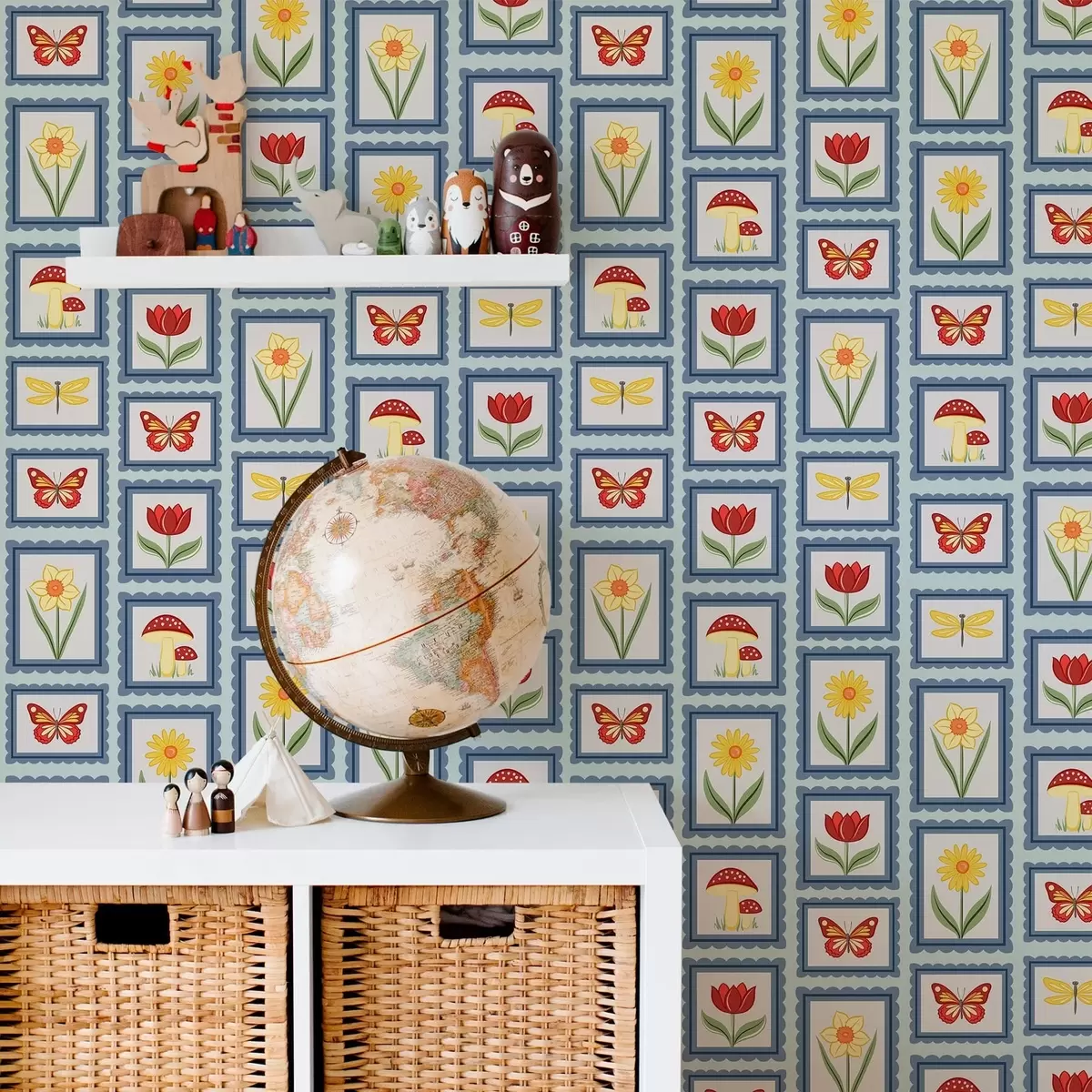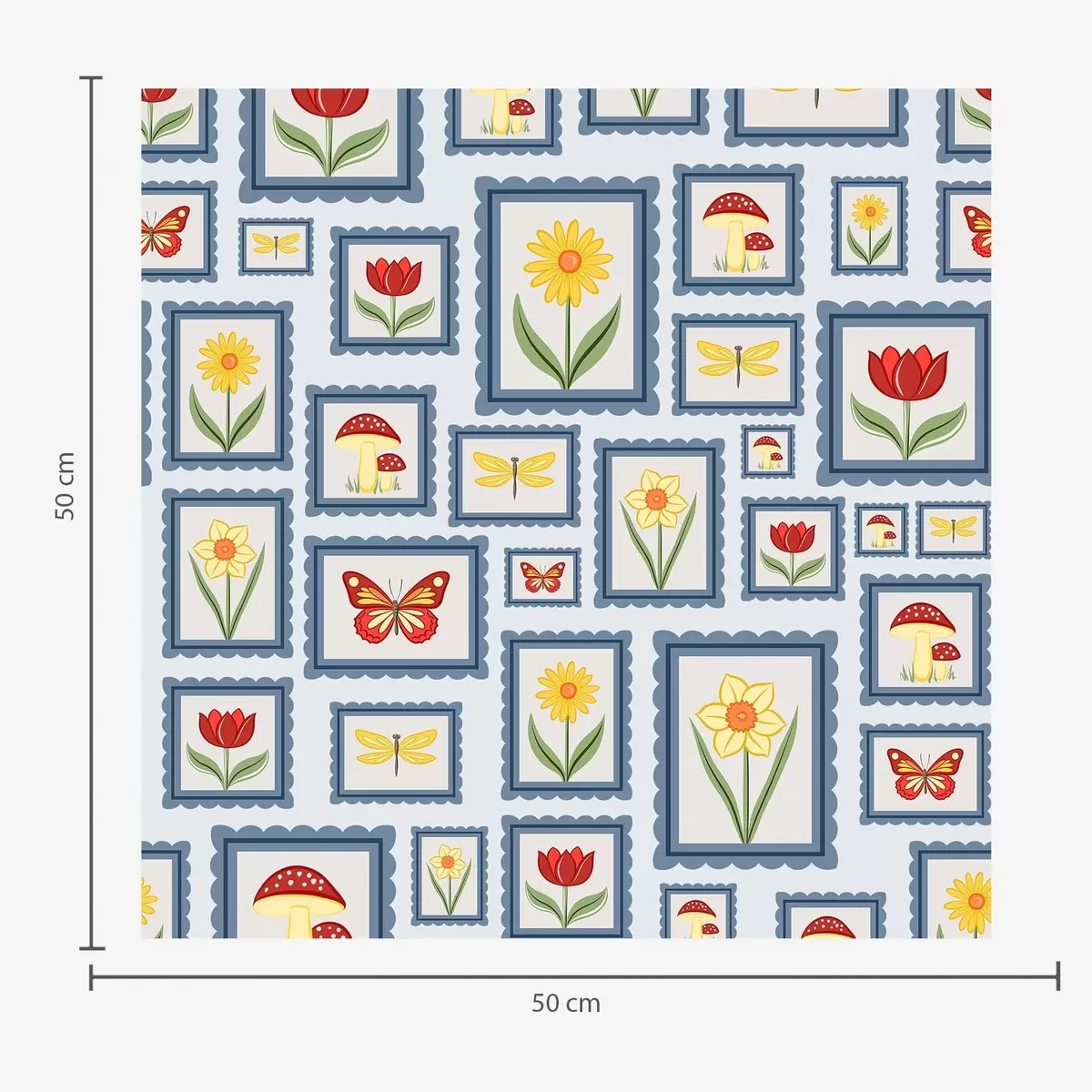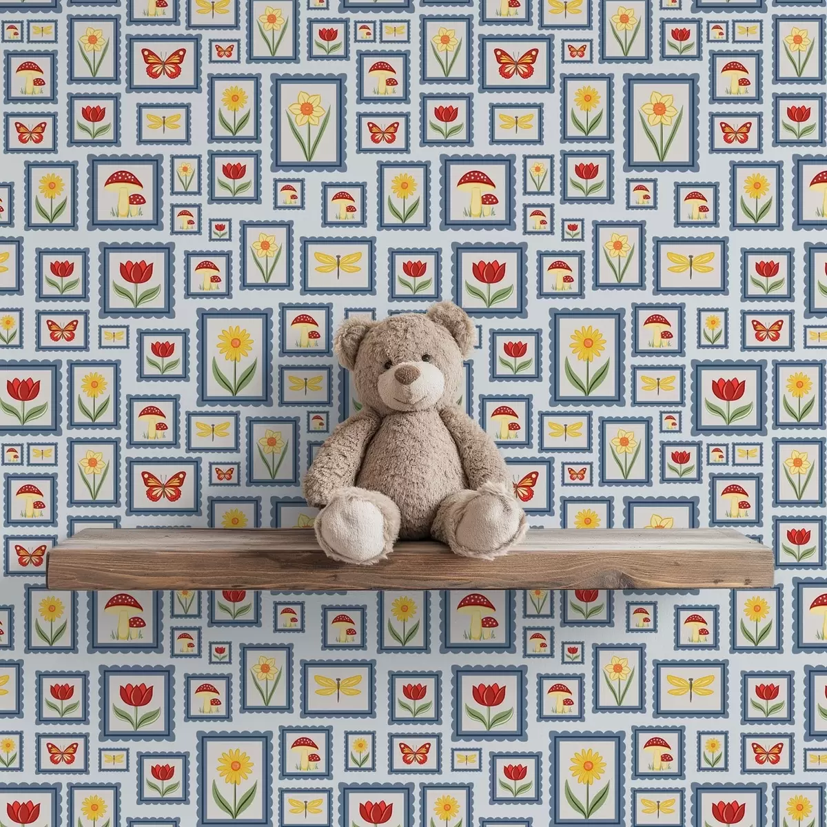 Tapet Inramade illustrationer på blå bakgrund Nr. a01176