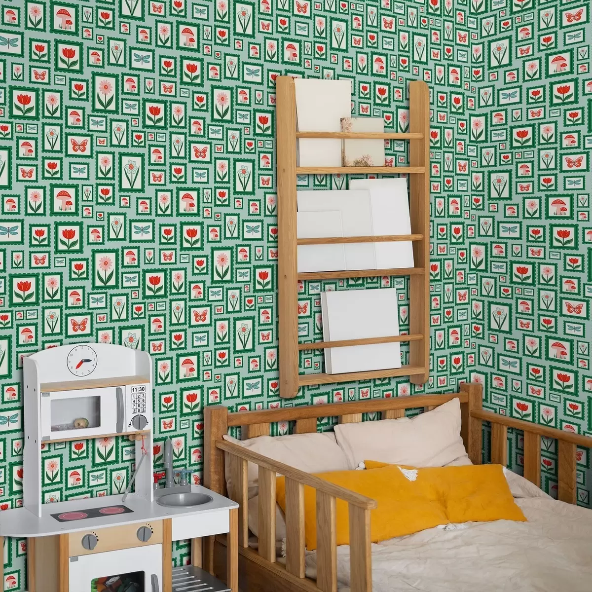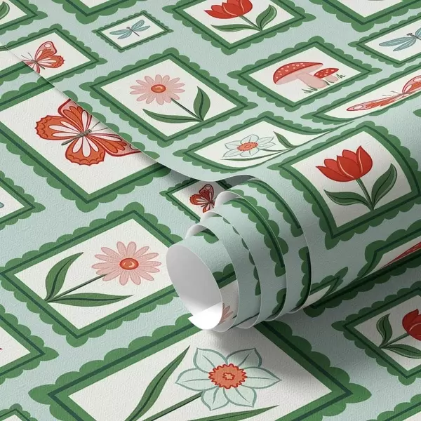 Tapet Inramade illustrationer med gröna kanter Nr. a01176v1
