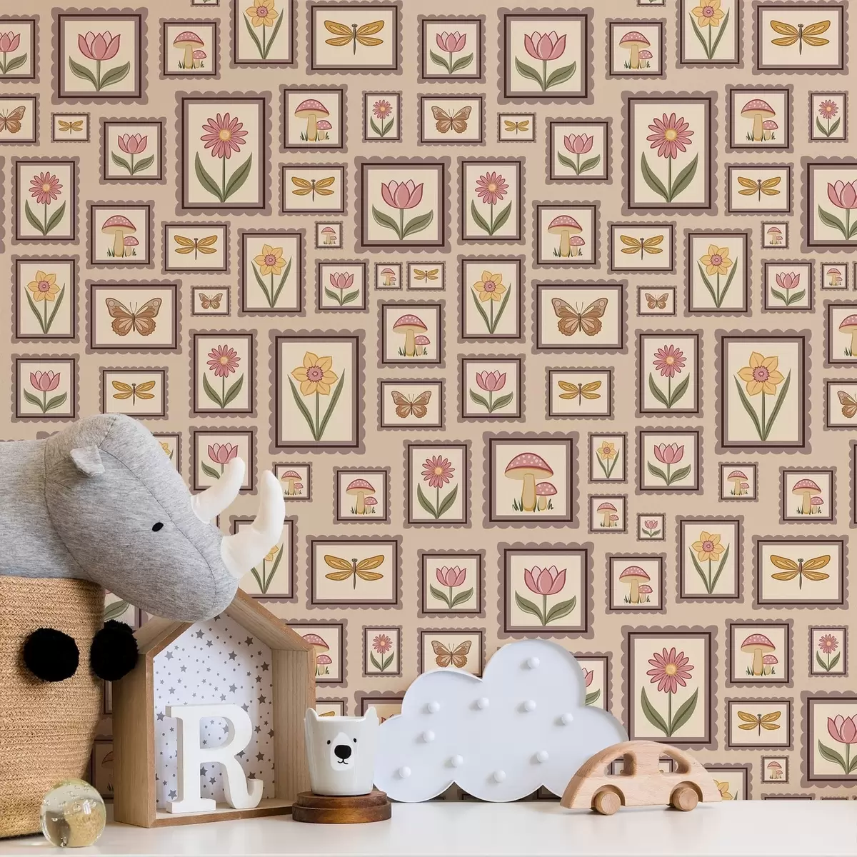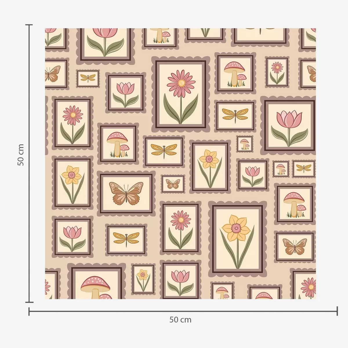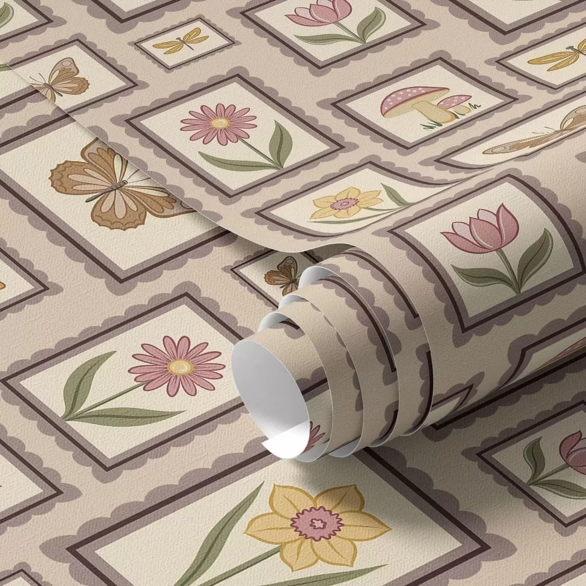 Tapet Inramade illustrationer i varma beige nyanser Nr. a01176v2