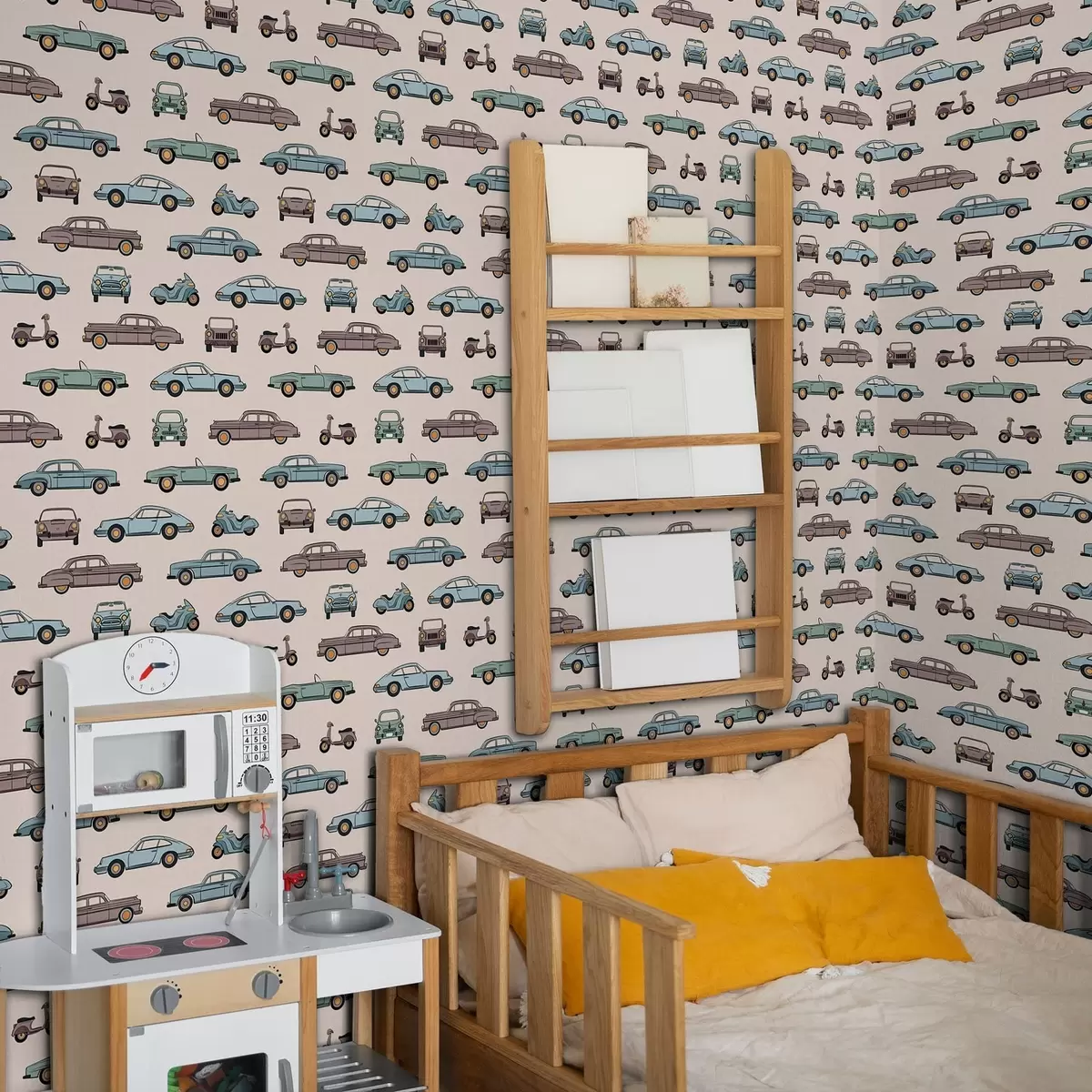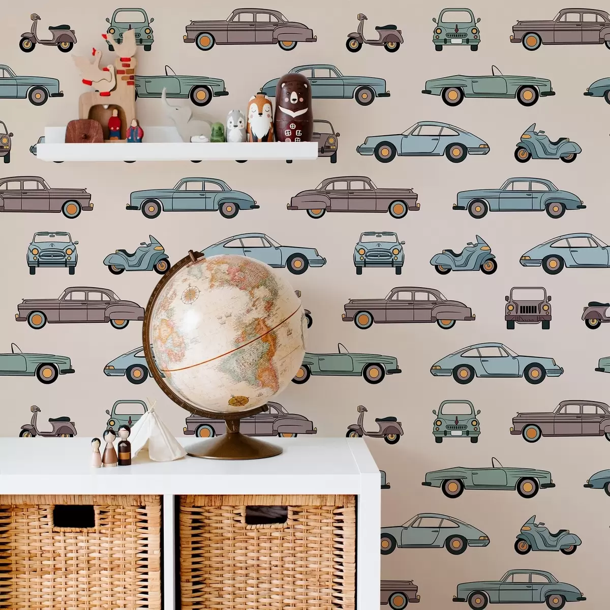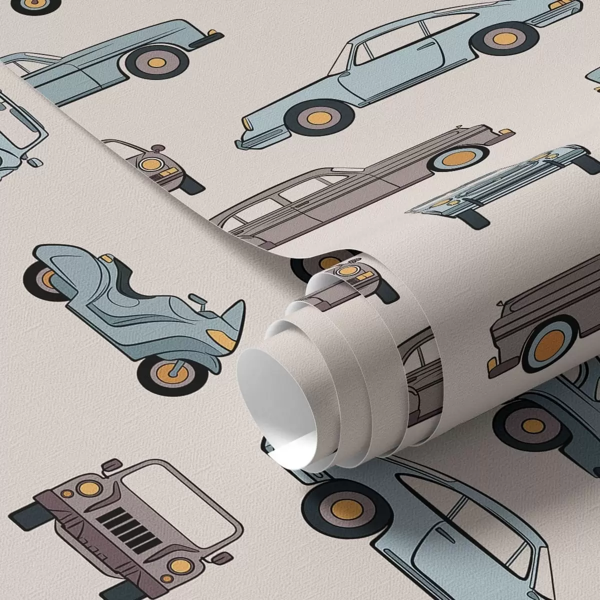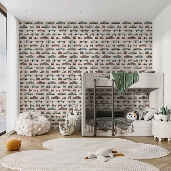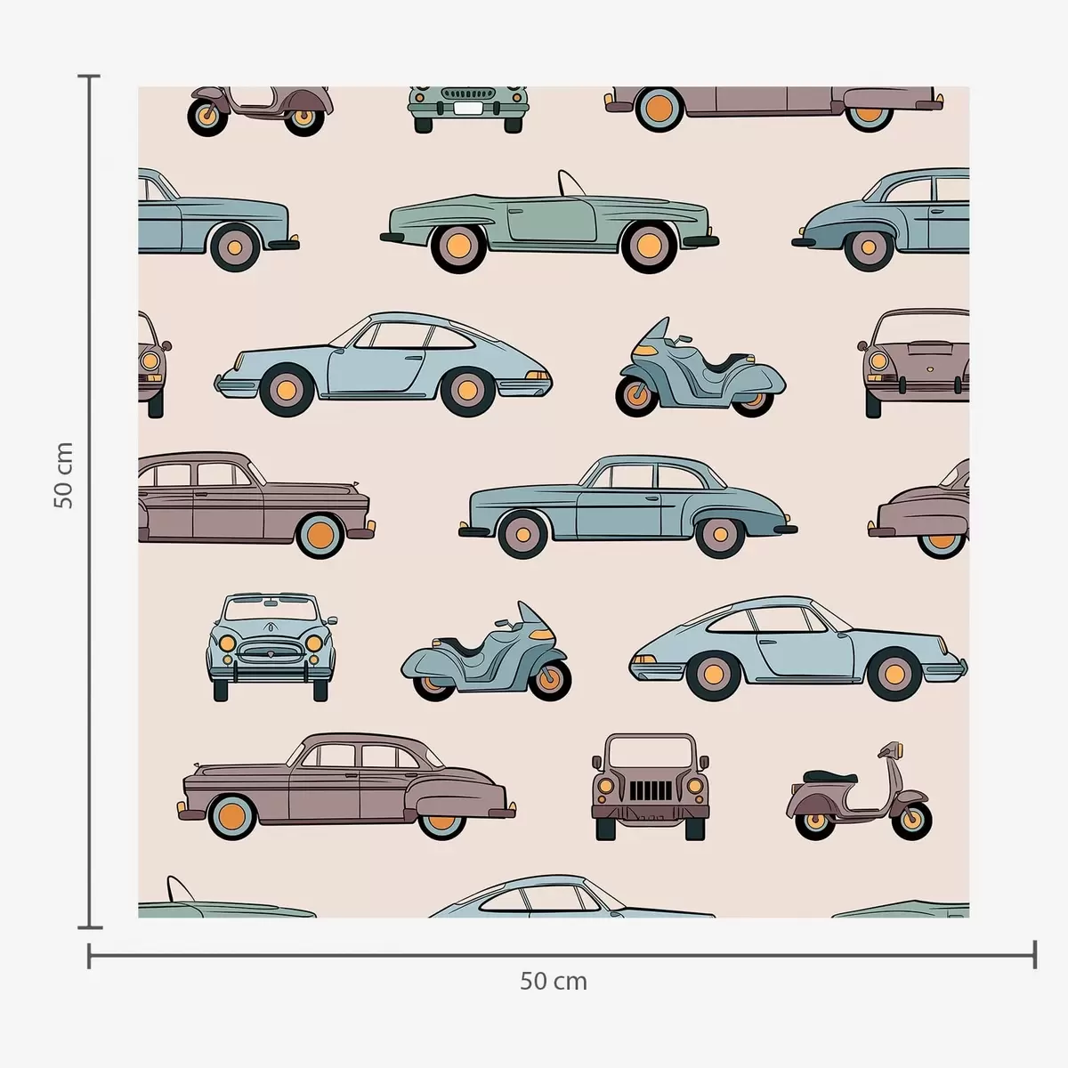 Tapet Retrobilar och skotrar mot en beige bakgrund Nr. a01178v1