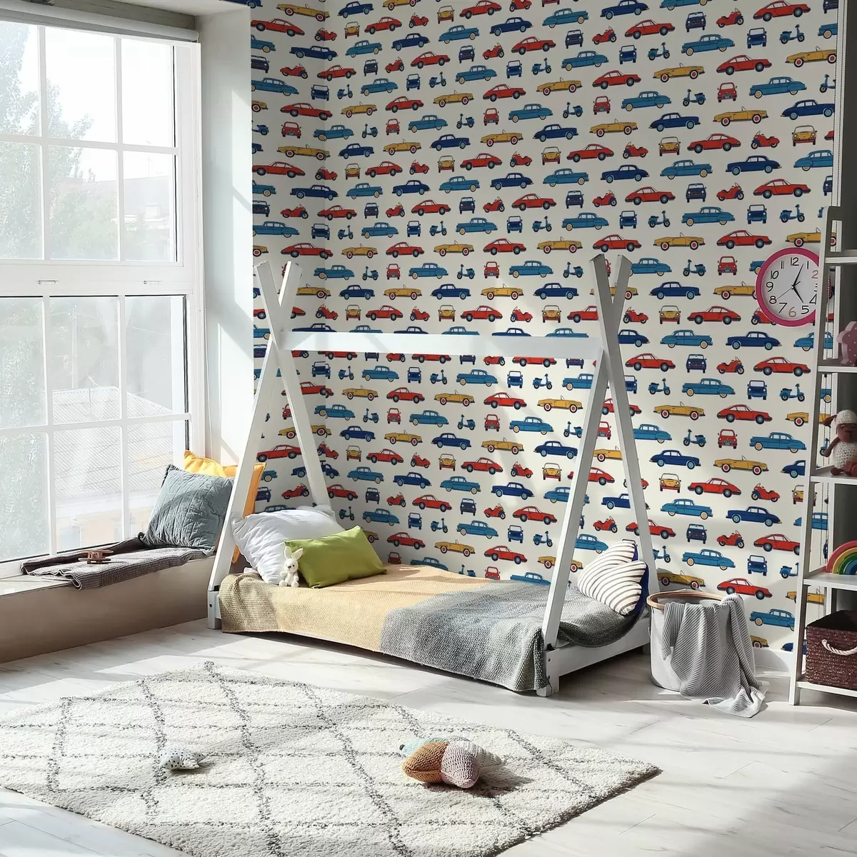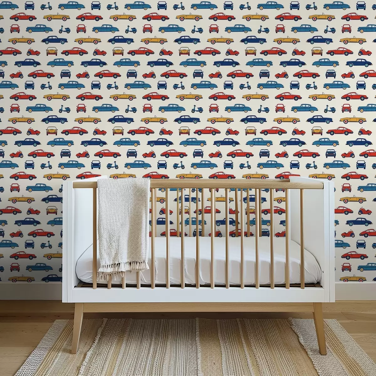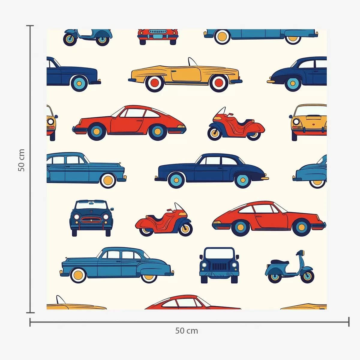 Tapet Färgglada retrobilar och skotrar Nr. a01178v2