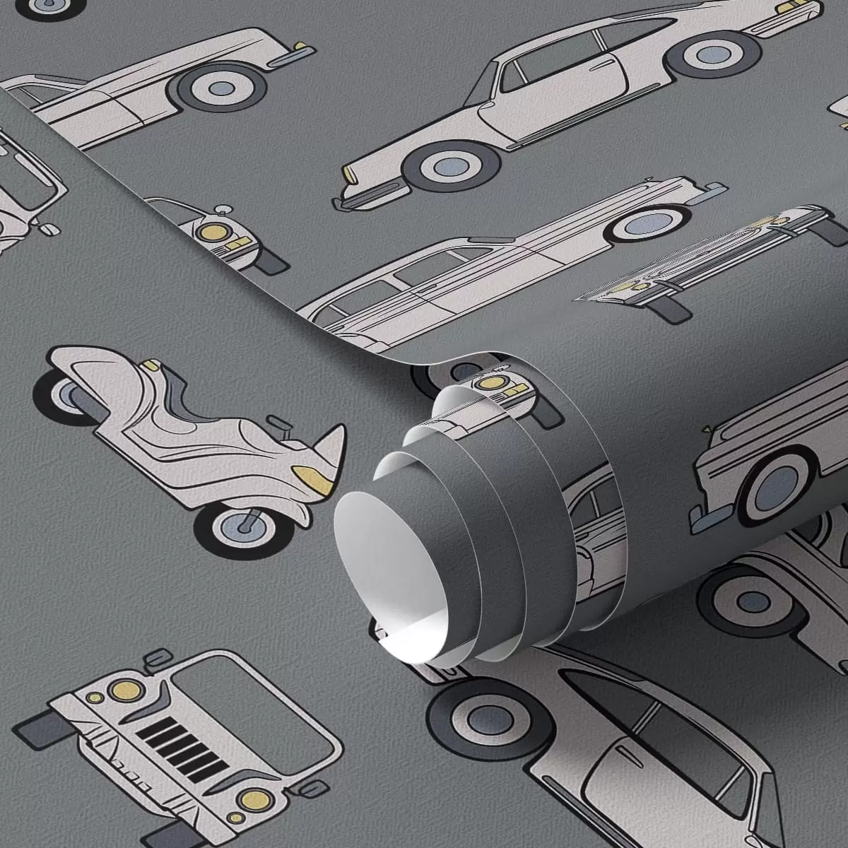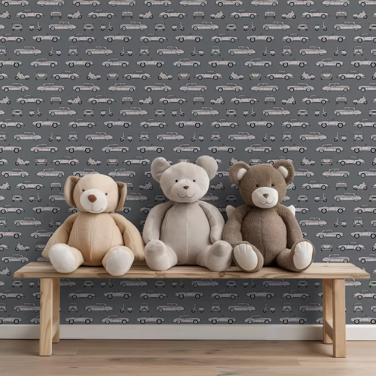 Tapet Retrobilar och skotrar mot mörk bakgrund Nr. a01178v3
