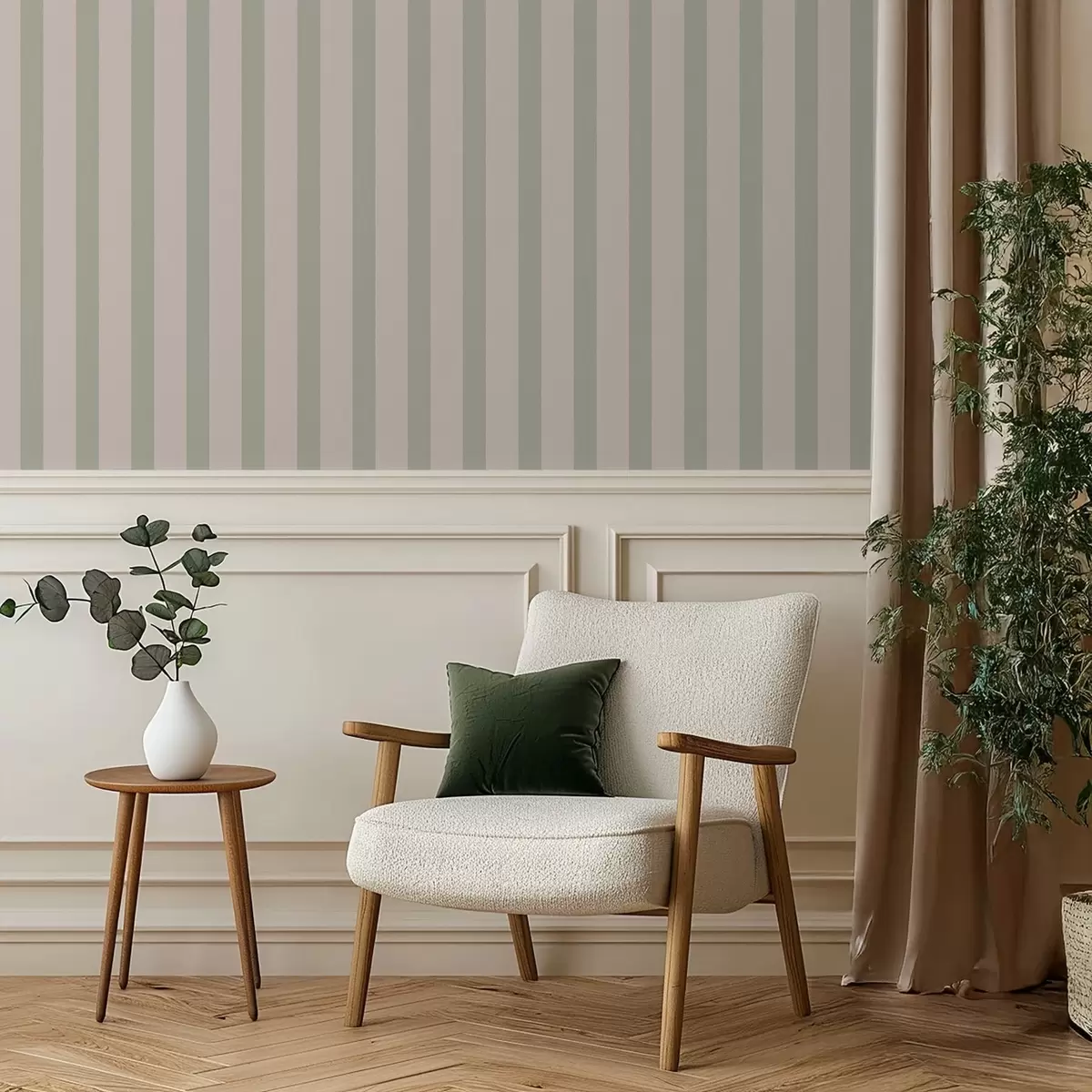 Tapet Gröna och beige vertikala ränder Nr. a01180