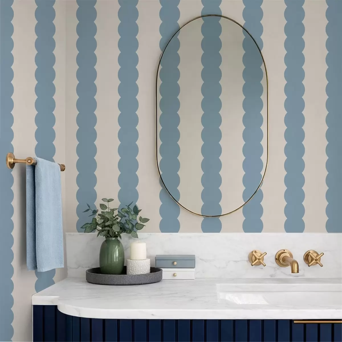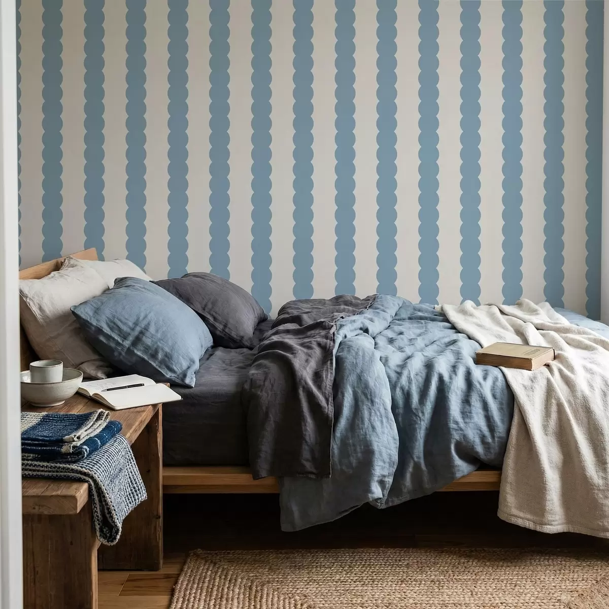 Tapet Blå vågiga ränder i minimalistisk stil Nr. a01182