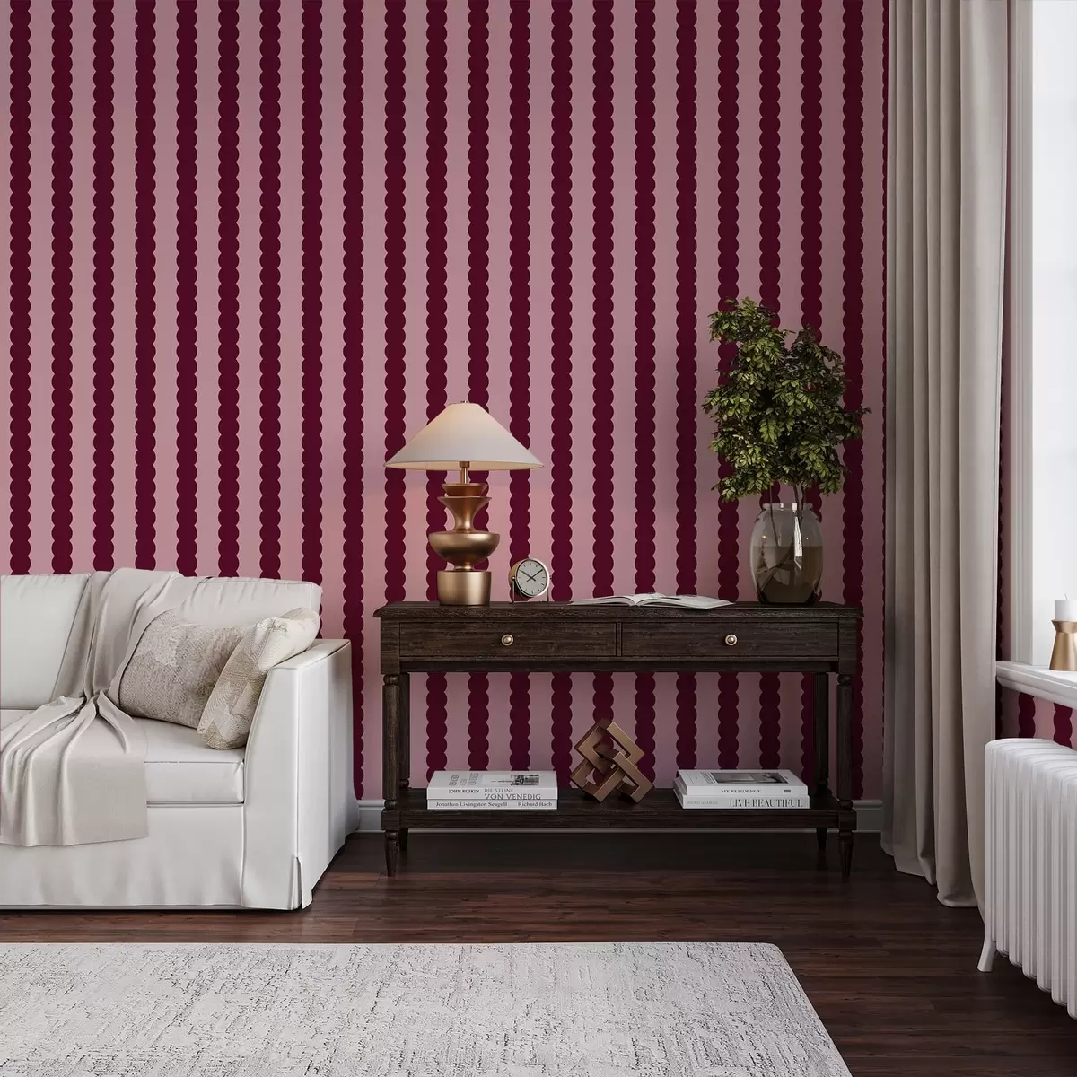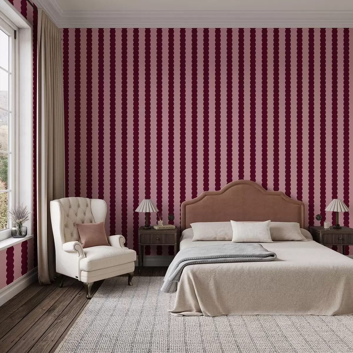 Tapet Vågiga ränder i vinrött i minimalistisk stil Nr. a01182v5